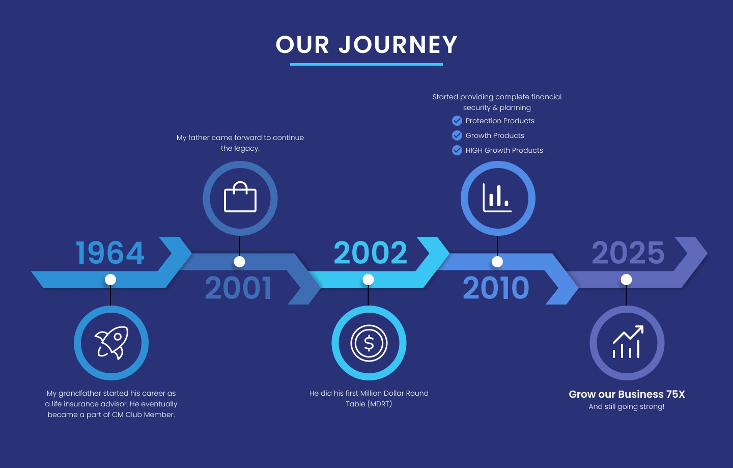 My father, late Mr. Madan Lal Agarwalla, embarked on his career as a Life Insurance Agent in 1964. Through his unwavering commitment and diligent efforts, he achieved the distinction of being the first individual to become a member of the CM Club at the LIC Golaghat Branch. Following his untimely passing, I stepped forward to carry on the legacy in 2001. I successfully qualified for the esteemed Million Dollar Round Table (MDRT), a recognition achieved by less than 1% of individuals in India. Subsequently, we expanded our services to include Goal Based Financial Planning, enabling our valued customers to protect themselves from unforeseen circumstances & attain financial independence.